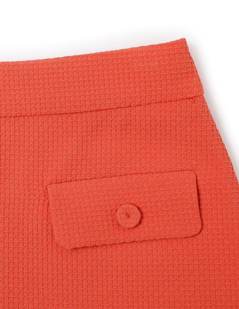 The skirt is crafted with smooth tailoring for a retro and elegant style. The slight A-line, cropped fit flatters the figure, while the fine fabric texture underscores quality. The beautiful orange-red color showcases modern aesthetics. Paired with the matching jacket, it easily elevates your urban fashion look.